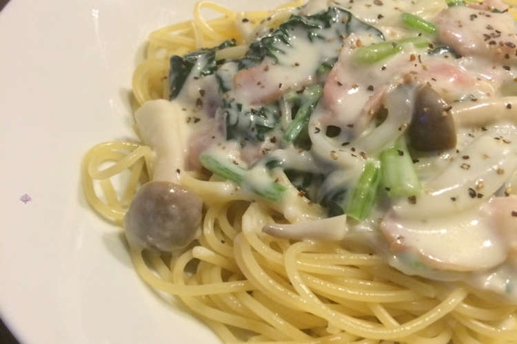 たっぷりほうれん草としめじのクリームスパゲティ 作り方 レシピ クラシル