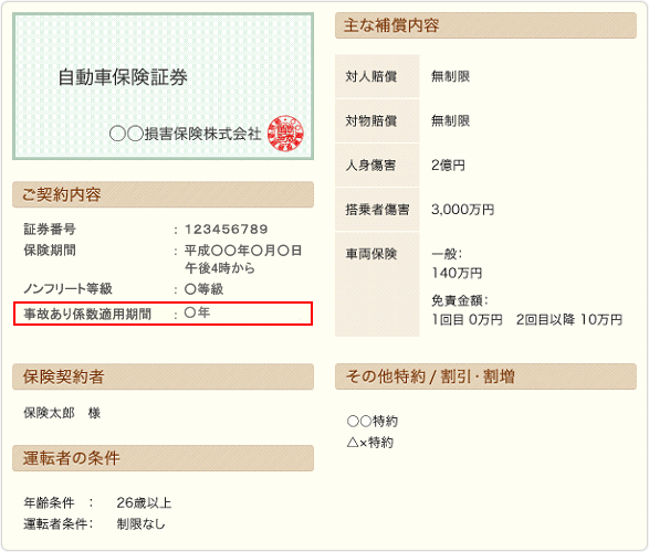 事故あり係数適用期間はどこを見ればわかりますか ソニー損保 自動車保険のよくある質問