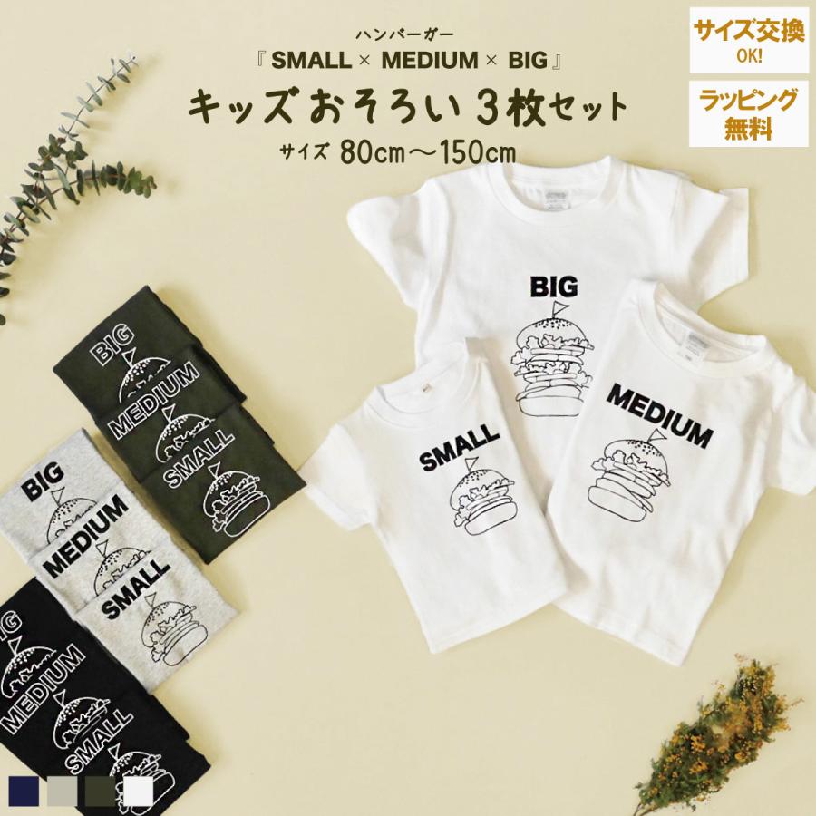 3人兄弟姉妹でおそろい ハンバーガー Small Medium Big プリント Tシャツ3枚組ギフトセット 出産祝い プレゼント Bg022 Iicoto Baby Gift 通販 Yahoo ショッピング