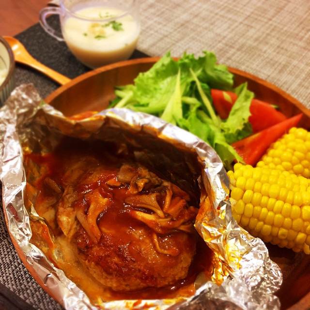 デミグラハンバーグのホイル包み焼き レシピ 作り方 By みくんぽたろう 楽天レシピ
