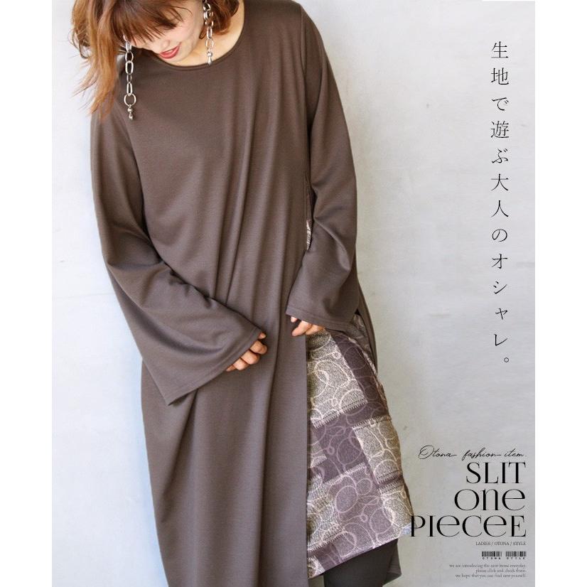 Otona 40代 50代 60代 ワンピース 大人可愛い ブラウン 生地で遊ぶ大人のオシャレ T18678ko Otona 通販 Yahoo ショッピング