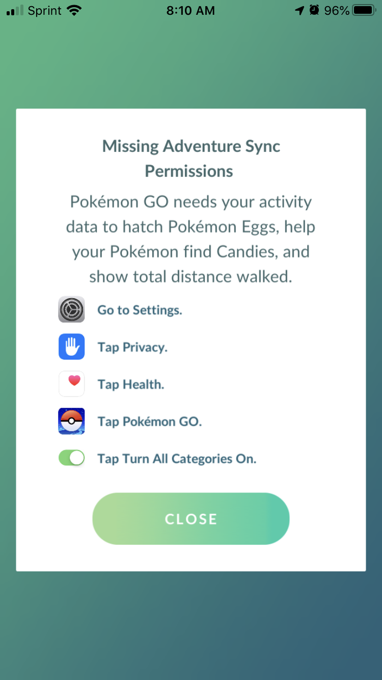 Pokemon Go Can T Access Health App Apple Community
